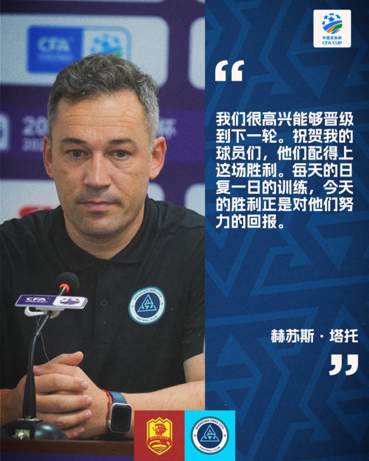 【赛后声音】主教练塔托:“我们很高兴能够晋级到下一轮。祝贺我的球员们,他们配得上这场胜利。”