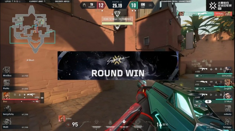 第十局EDG开局在B常被TH看到三人,随后EDG等待时间后再次强行打B,康康进场换掉一人,EDG在B点完成下包但是TH四人回防直接大拉成功收下EDG多人,TH拿下一分!