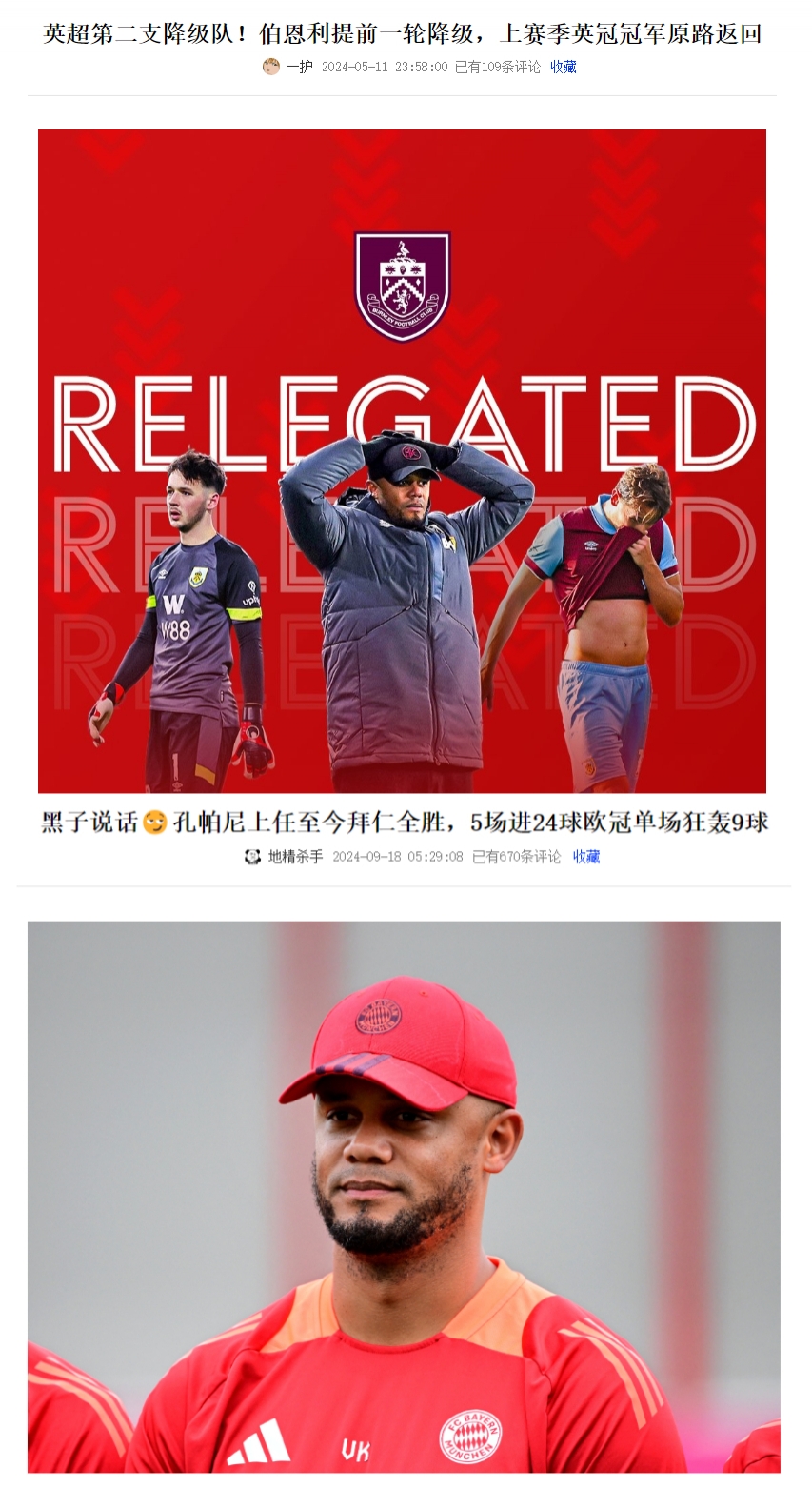 38岁的孔帕尼在刚接手拜仁时受到了多方质疑,上赛季孔帕尼率领伯恩利在英超仅取得5胜,黯然降级。
