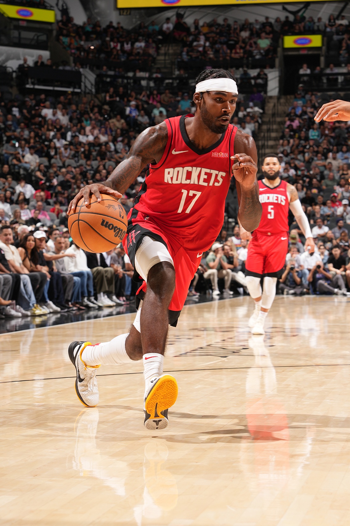 本场,火箭一度落后31分,但是在塔里-伊森的带领下永不放弃奋力直追,一度反超比分,塔里-伊森一度拼到脱力摔倒,在场边疯狂大喘气,他最终出战35分钟,拿到27分9板1助4断3帽!