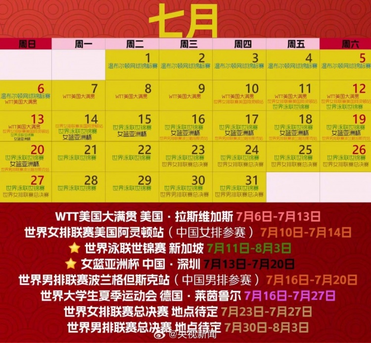 速速收藏!央视体育官方发布2025年体育赛历