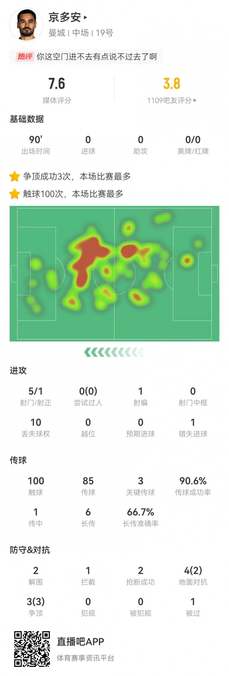 还踢主力吗京多安5射1正1失良机3关键传球4成功长传获评7.6分