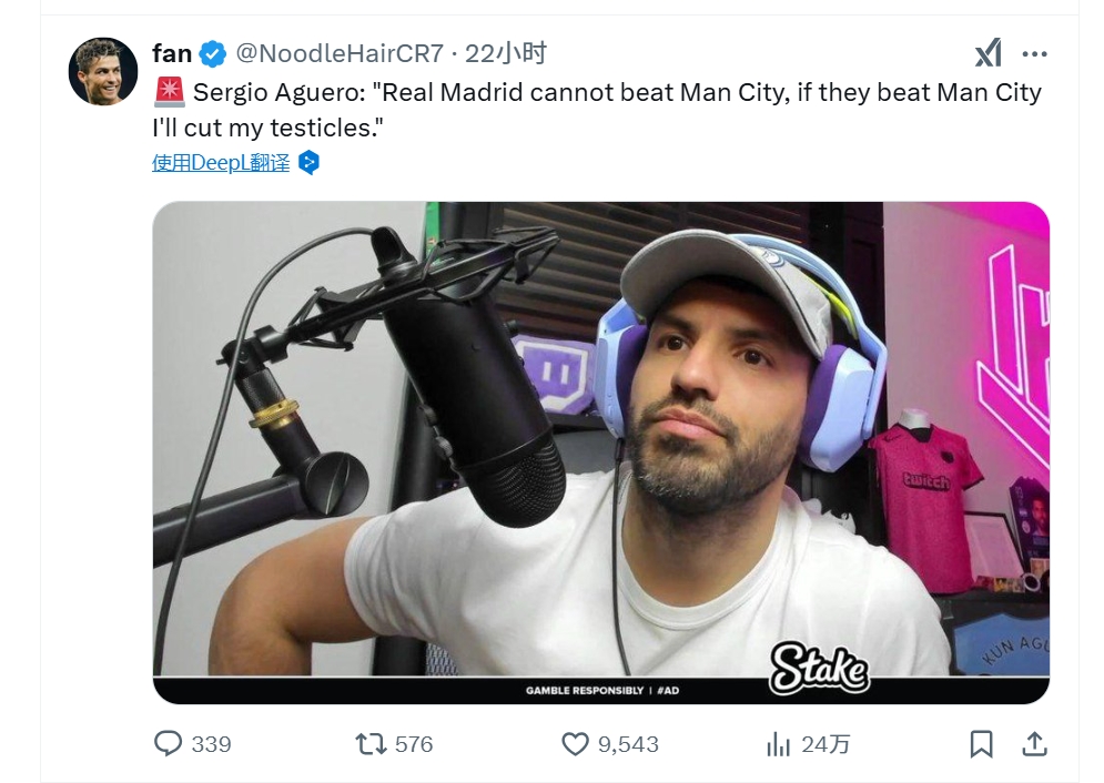 阿圭罗说皇马赢曼城就“切蛋”别着急喷这大概率是假新闻