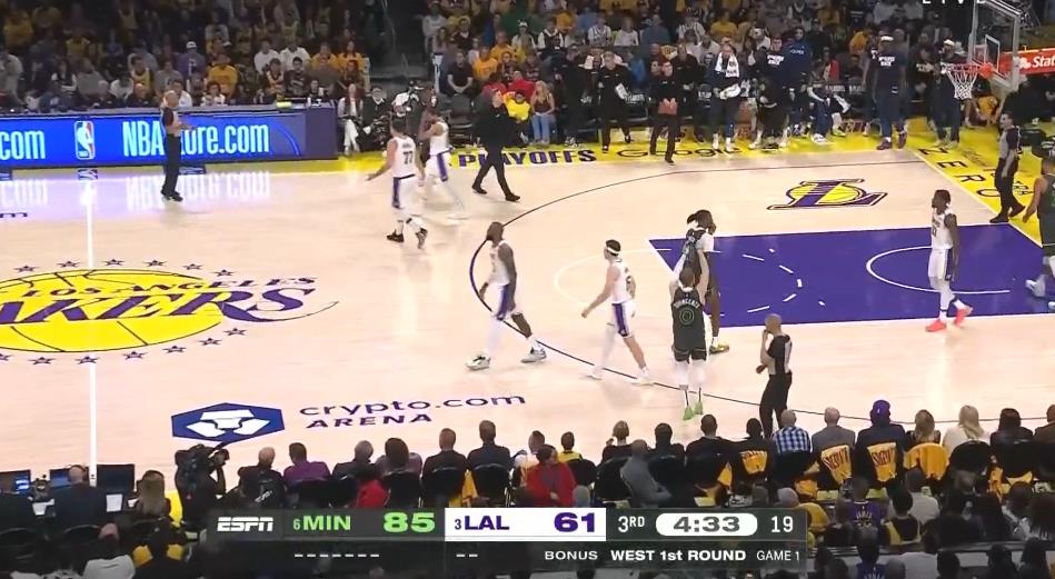 分差缩小到24湖人逼出森林狼本场第一个暂停!