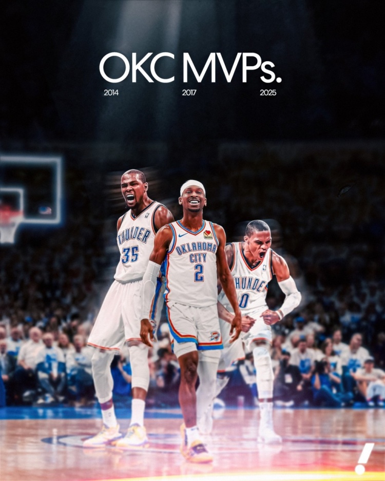 亚历山大成为了雷霆队史第三位MVP,此前两位分别是杜兰特(2014年)和威少(2017年)。