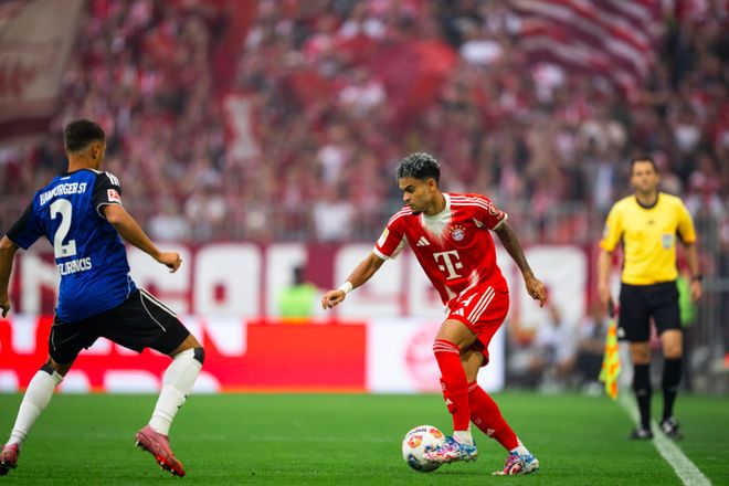 第29分钟,拜仁快发任意球,迪亚斯远射破门,拜仁彻底打花比赛。