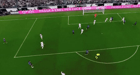 第30分钟,国米在尤文图斯的30米区域连续传球,奥古斯托将球传到禁区前,恰尔汗奥卢一蹴而就,扳平比分。