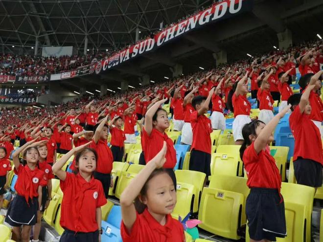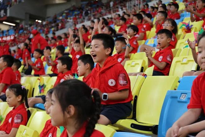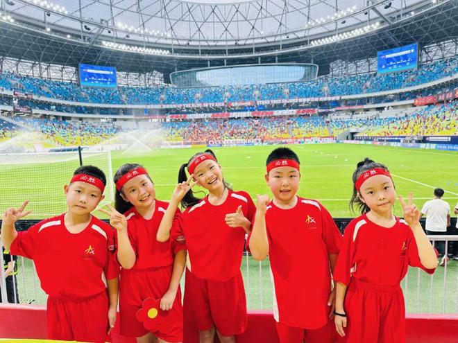当国歌奏响,所有的孩子同时面向国旗立正敬少先队礼,那个时刻,爱国主义教育的意义真正具象化了;当比赛开始,孩子们跟着球迷一起欢呼,为主队,也为客队;体育比赛的精神早已打破胜负界限,除了拼搏、奋斗,还有团结、友谊;当比赛结束,在一双双激动的小脸上,我看到了兴奋,更看到了新的成长!