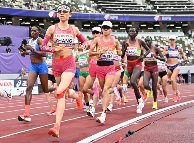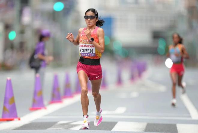 这是次仁措姆自2019年多哈之后,再次身穿国家队战袍出战世锦赛。两次世锦赛地点不同,但对藏族姑娘来说,都是高温热战。六年前,于半夜时分开跑的多哈之战,次仁措姆跑出3:01:56。六年后的东京,28岁的她以 2:31:38完赛,位居三位中国参赛女选手之首。