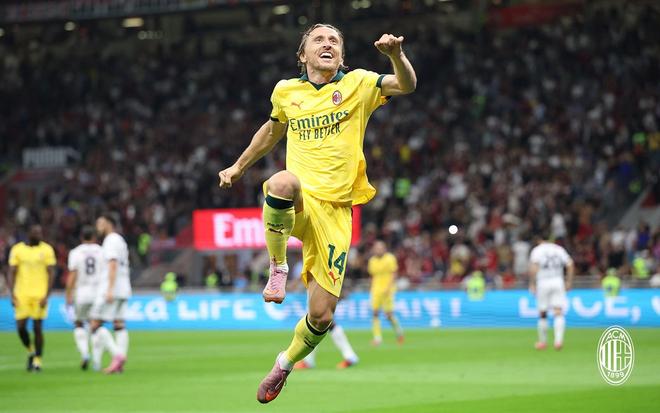 意甲第3轮主场迎战博洛尼亚的比赛中,莫德里奇在第61分钟的进球为米兰首开记录。