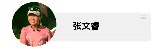 “之前我是徒步的,所以会有一些晚上走夜路的经验,反正戴着头灯,所以我觉得跑夜赛其实没有很大的担心。”与其他担心黑暗的选手不同,张文睿显得从容许多。她首次参加就选择夜赛的原因在于:“主要是因为白天太热太晒了,晚上跑会比较舒服一点。而且夜晚在山野里,黑暗会隔离掉很多白天视野带来的干扰。山里的声音会变得格外清楚,人与自然的那种亲密感更强。”