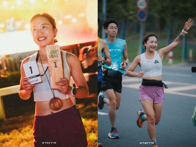 来自苏州本地的李沁钊是一家外企的HR。她从2021年开始参加XTERRA的比赛,那时她刚生完小孩第八个月,是她的教练一直鼓励她来参赛。如今,她几乎年年都会跑XTERRA的夜赛。