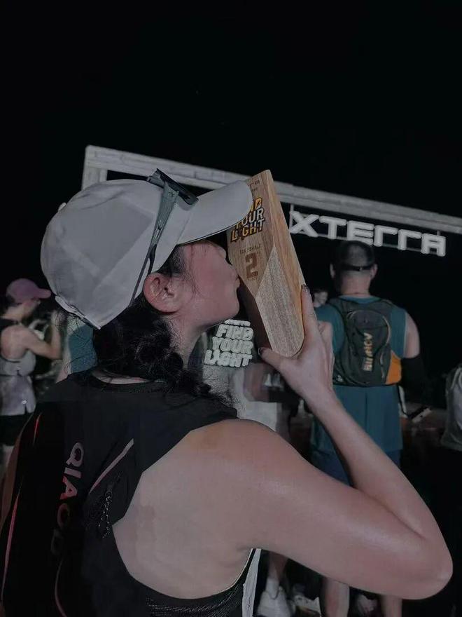 对于自己为什么会选择夜赛,她的理由是“因为是XTERRA的比赛,我才会敢跑夜赛。XTERRA的比赛路线很清晰、指引也很明确。晚上跑其实是看不清的,特别是我们跑前面的选手其实都在埋头苦跑,这时候如果一旦看轨迹,就很容易跑错路。晚上又要看轨迹又要看路,对于我们跑在前面的人来说特别不安全。但是因为XTERRA的线路很明确,志愿者们也很负责,让我完全不用担心跑错路,只要跟着光和指引跑就行了。”