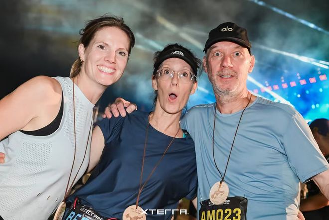 来自荷兰的Hansje一家都是户外运动爱好者,虽然之前也曾参加过多次XTERRA的比赛,但他们依然会对每次比赛感到兴奋和愉悦。谈及夜赛, Hansje和 老公Philip都认为夜跑赛事有着独一无二的魅力——当点点星光在林间穿梭,会有一种如梦似幻的氛围。这种体验既充满冒险感,又让人格外平静,会让人完全地沉浸当下,跑步也仿佛成为了一种冥想。