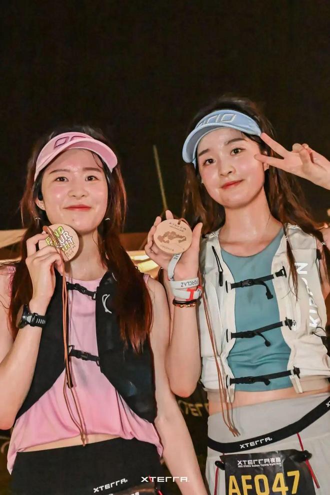 去年,在周边跑者朋友的影响下,她顺其自然解锁了自己第一个21公里的夜野。而这次夜赛初体验正是始于XTERRA的渔洋山夜赛。邓力谈到自己喜欢夜赛的原因表示,“夏季白天的比赛,要晒太阳。高温加暴晒总归不舒服。选择夜跑的话,相较白天,整体舒适度会更好。”至于夜晚参赛会不会怕黑这个问题,她说自己之前是有点怕黑的,但是当自己跟朋友们一起沉浸在夜赛的环境中时,就会把它当作一次挑战跟突破。“更重要的是,夜赛一般是傍晚出发。去年参加渔洋山夜跑的时候,风景是真好。那种黄昏时刻碰到落日的感觉非常奇妙。在大汗淋漓的跑完比赛后,再坐下来望着漫天繁星,听着现场Live乐队的演出(还有啤酒畅饮),氛围感特别棒。”