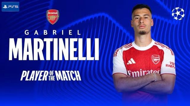 替补登场传射建功,马丁内利当选阿森纳20毕尔巴鄂一役全场最佳