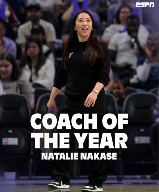 娜塔莉-中濑执教金州女武神的首个赛季,率队常规赛取得23胜21负,以常规赛第八名晋级季后赛,也是让她如今当选WNBA年度最佳教练,并成为首位获得如此荣誉的亚裔教练创造历史。
