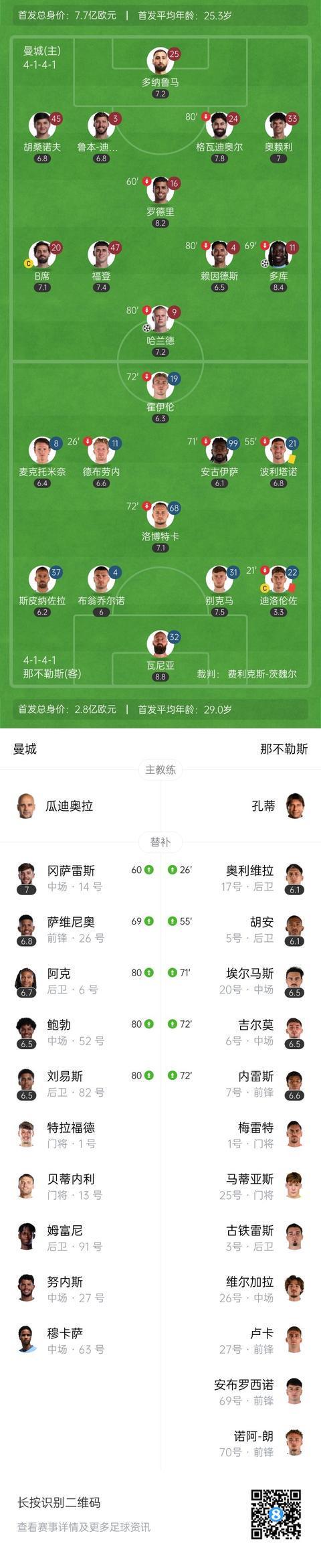 丁丁登场仅26分钟!曼城20十人那不勒斯哈兰德欧冠50球+造红牌