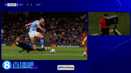 第18分钟,曼城反击机会,迪洛伦佐身后放铲踢倒即将单刀的哈兰德,主裁第一时间没有表示,VAR介入后主裁亲自回看改判迪洛伦佐直红,那不勒斯少打一人↓