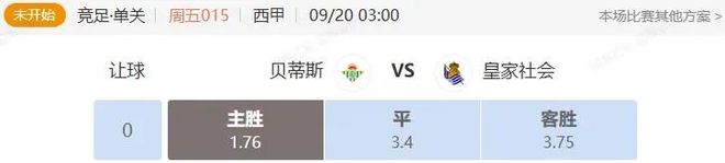 竞足 周五015 西甲 贝蒂斯VS皇家社会
