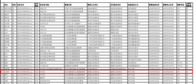 值得注意的是,2018年中国足协官网曾经发布过一份“业余赛事违规违纪黑名单”!同样有一个身份证号开头地区是成都的王溪洋,因为在成都城市足球超级联赛参与打架,而榜上有名!