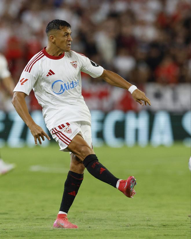 雷速体育9月21日宣 在今日凌晨进行的西甲联赛第5轮,塞维利亚客场对阵阿拉维斯,比赛第67分钟,36岁老将亚历克西斯·桑切斯接队友传中抢点破门,打入回归西甲后首粒进球。