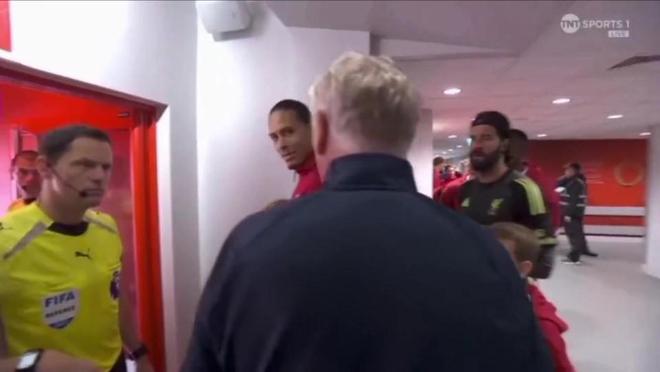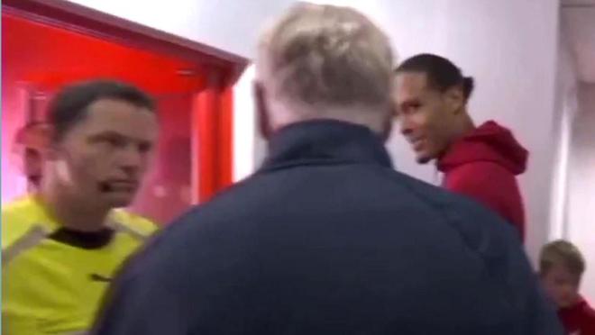 据TNT Sports的转播画面显示,62岁的莫耶斯在球员列队准备入场时,走向裁判表达了某种不满。而就在他离开时,利物浦队长范戴克被镜头拍到忍不住笑了出来,似乎对这一幕颇感戏谑。