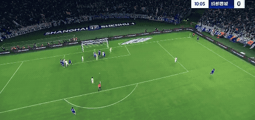 第10分钟,高天意开出角球,蓉城禁区内“兵荒马乱”。短短1秒钟,申花完成了3次射门,阿苏埃将球打偏。