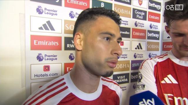 直播吧09月22日宣 阿森纳主场1-1绝平曼城。赛后绝平功臣马丁内利接受了BBC节目《MOTD》采访。