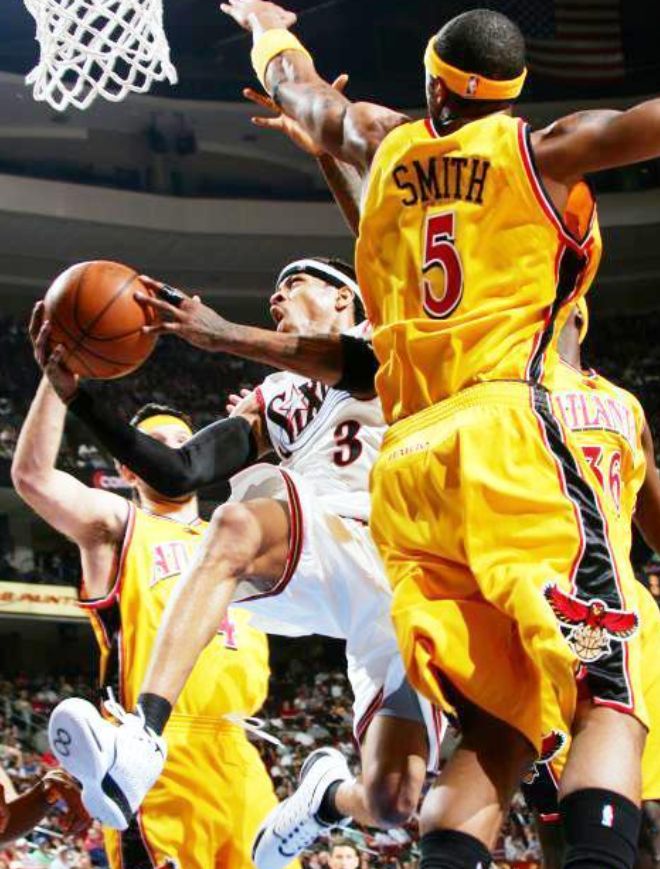 在NBA历史上,从没有一名1.83米的得分后卫,能像阿伦・艾弗森这样,让对手不得不派出 “数人包夹” 来限制他。他的身高是天然劣势,但他的速度、节奏变化和突破技巧,却让他成为 “内线杀手”—— 只要他想突破,就能靠交叉步变向晃开防守者,靠变速摆脱追防,最终在高大内线面前完成得分。也正因如此,针对艾弗森的包夹,从 “他进内线后才启动” 变成 “他刚过半场就准备”。