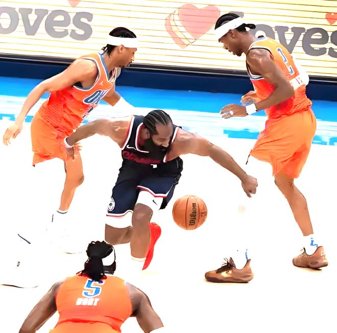 所谓 “没过半场就包夹”,对哈登而言,就是对手在他刚接到发球、还未过中线时,就派一名球员从侧后方夹击,逼迫他失误或把球传给队友。为什么要这么极端?因为一旦让哈登过了半场,他的后撤步三分、突破分球、造犯规能力就会全面激活:一对一防守时,没人能防住他的节奏变化;半场阵地战里,双人包夹会被他精准传给空位队友;即便收缩内线,他又能在外围命中超远三分。于是,“提前包夹” 成了唯一选择 —— 宁可放掉哈登的队友,也要阻止他发起进攻。