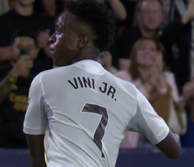 第28分钟,在左路找不到机会的维尼休斯,游弋到右路等待良机。在禁区内,维尼休斯接球,面对对手2名防守球员,他突然用外脚背弹射,皮球径直飞向远角。这个进球,堪称神来之笔,对手门将甚至都没有反应,皮球已经飞进大门。之后不久,维尼休斯在左路带球反击,随后长传找到右路的马斯坦托诺,后者在禁区内爆射破门,为皇马扩大优势,维尼休斯也收获了一次助攻。