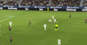 皇马的高位逼抢有很多隐患,好几次失败后被莱万特的反击传递打穿了,只是后卫最后赌博式放铲或者是因为莱万特球员分球不合理,导致没能完成进球。