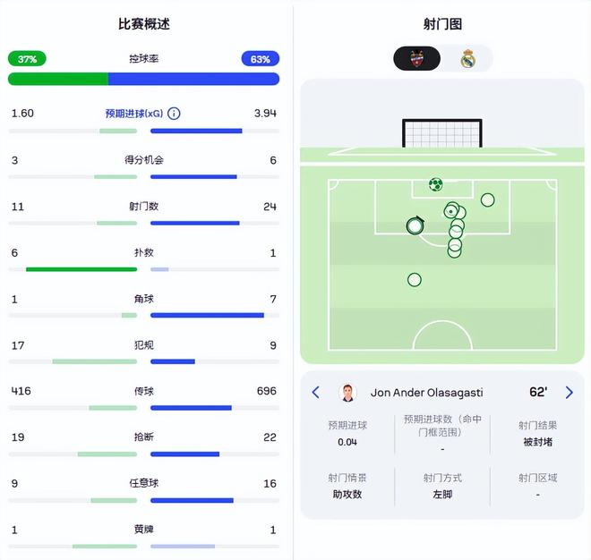 全场比赛中,莱万特得到了11次射门机会,其中7次射正,3次是绝佳得分机会。如果不是点球出现的及时,皇马未必能在客场全身而退。