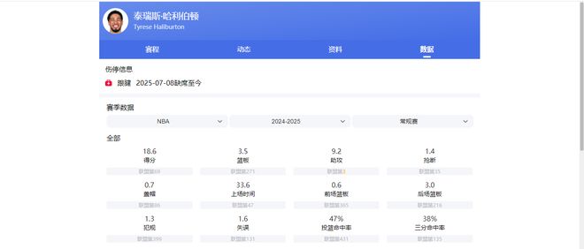 NBA24-25赛季常规赛,哈利伯顿场均可为球队贡献18.6分3.5篮板9.2助攻1.4抢断。目前,哈利伯顿已能脱下护具,并进行投篮训练。