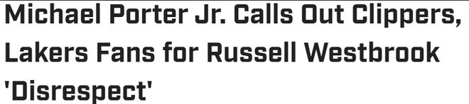 北京时间9月25日,据美媒报道,小波特在播客中谈到了威少,并且称湖人和快船的球迷并不尊重他。