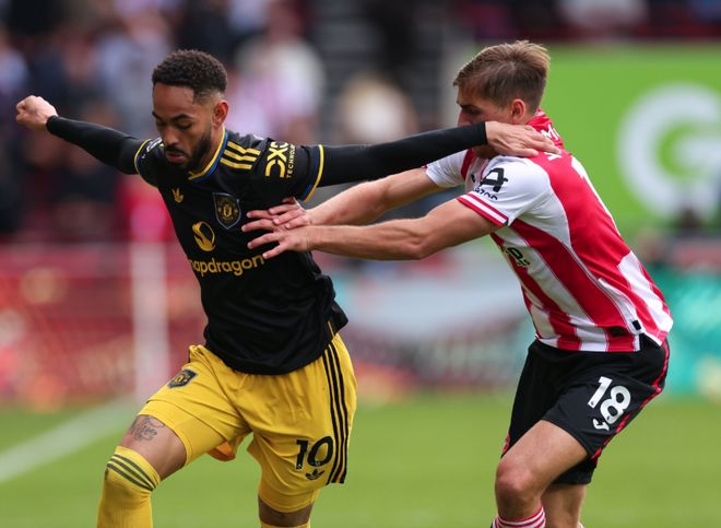 布伦特福德的后场长传进攻,曼联防线大乱,沙德横传门前,巴因德尔勉强作出扑救,伊戈尔-蒂亚戈推射得手,曼联0-2落后。