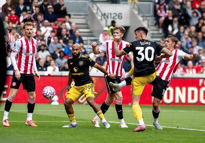 多古左路传中,布伦特福德门前,舍什科连续3次攻门,先是头球被挡出,接着右脚垫射,还是被扑出;舍什科左脚爆射,总算是将球送入大门,曼联1-2扳回一球。