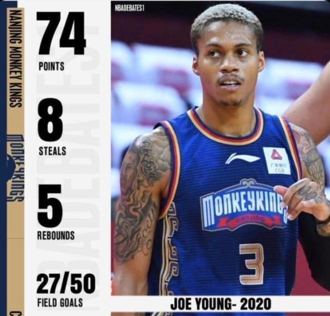 约瑟夫-杨今年33岁,身高1米88,臂展1米96,他是NBA2015年次轮第13顺位秀,NBA生涯只效力过步行者队1支球队,一共出战过127场常规赛,场均可以拿到3.4分1.0个篮板和0.9次助攻,投篮命中率39.3%。约瑟夫-杨2018-19赛季开始进入CBA,先后效力于南京同曦队、北控男篮和福建队,在CBA的5个赛季约瑟夫-杨拿到过1次得分王、1次全明星赛MVP。