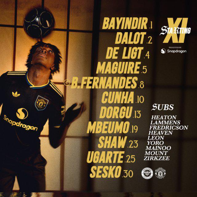 英超第6轮,曼联客战布伦特福德,赛前曼联首发阵容已经出炉,具体名单如下: 曼联首发:巴延德尔 / 德利赫特、马圭尔、卢克·肖 / 达洛特、布鲁诺·费尔南德斯、乌加特、多尔古 / 姆伯莫、库尼亚 / 舍什科