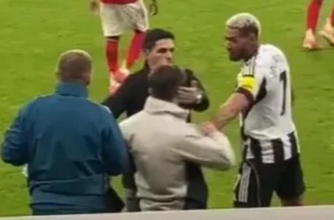 终场哨响后,纽卡斯尔中场球员乔林顿对阿尔特塔教练团队的一名成员表示不满,紧张气氛随之升级。