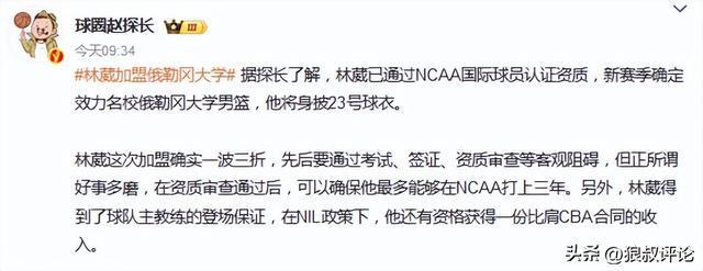 林葳加盟NCAA俄勒冈大学引热议有出场时间保障收入比肩CBA合同