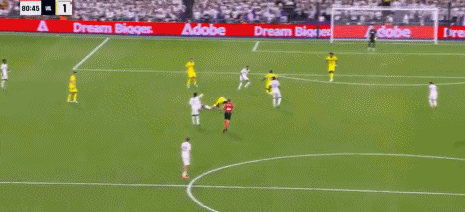 易边再战皇马继续加强进攻,开场仅1分钟,皇马右路压上大范围转移,姆巴佩禁区弧顶处策应头球摆渡顶到左侧,维尼修斯插上拿球,非常轻松的过掉穆里尼奥后杀入禁区,小角度大力抽射,皮球直入球门近端死角,皇马1:0打破僵局。第68分钟,维尼修斯又是左路强攻,这次他禁区边上突破马林的防守往禁区里冲,马林推了一下,维尼修斯应声倒地,主裁吹罚了点球。维尼修斯操刀主罚一蹴而就梅开二度,皇马2:0领先。