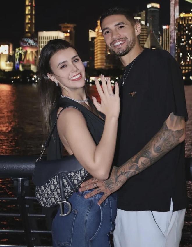 有情人终成眷属!昨晚,评估身价200万欧元的西海岸后防中坚里切利在流光溢彩的黄浦江畔,向自己的女友娜塔莉亚·吉梅内斯求婚成功,美艳动人的后者正式升级为里切利的未婚妻。