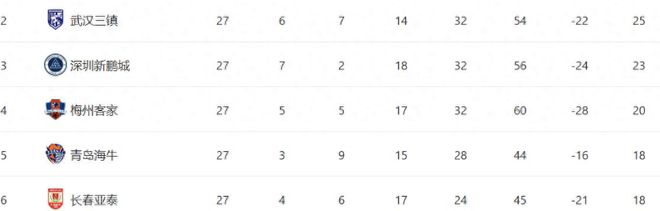 本赛季的中超联赛只剩下最后3轮了!虽然冠军之争进入白热化!但本文只讨论保级形势。随着中超第27轮结束。积分榜上排名第11位的河南队已经提前上岸了!他们的积分已经达到了32分,领先倒数第二的青岛海牛队14分。而从第12名的武汉三镇、第13名的深圳新鹏城队、第14名的梅州客家队以及深陷降级区的青岛海牛队和长春亚泰队,这5支球队都有降级的风险。值得一提的是武汉三镇队和长春亚泰队都曾经是中超联赛冠军。而长春亚泰队目前积分榜垫底。