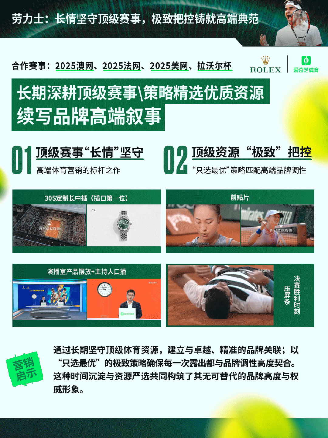 联合喜力、劳力士、雅诗兰黛等品牌,以“观赛+欢庆”场景共建锁定关键场次,实现全景化观赛覆盖,既提升曝光效率,更与受众达成情感共鸣。