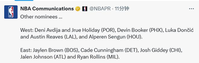 - NBA | NBA官宣周最佳:亚历山大马克西当选东契奇场均36.5分无缘