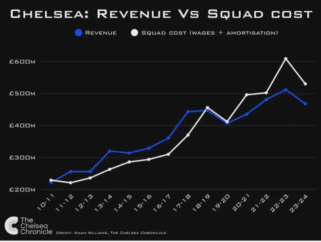 切尔西收入与阵容成本对比折线图