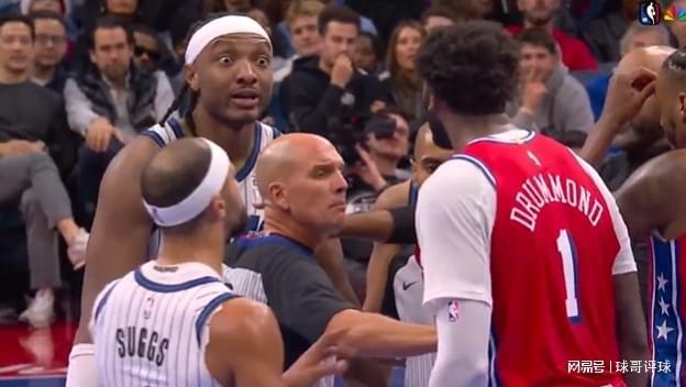 节末,场上局势愈发紧张,两队发生了激烈的冲突。庄神在靠近弧顶的地方防守沃克时,做出了不恰当的小动作,用手拉拽沃克的球衣。这种行为在激烈的比赛中很容易引发冲突,沃克自然不会容忍这样的侵犯,他一巴掌打掉庄神拉拽的胳膊。庄神不仅没有收敛,反而顺势推搡沃克,还冲动地给了沃克一拳头,并且做出格斗姿势,准备大打出手。这一幕瞬间让场上的气氛变得剑拔弩张。裁判和双方队友见状,一拥而上,迅速平息了这场冲突。最终,贝恩、沃克、小卡特和德拉蒙德各吃技犯,而萨格斯则因为累计两次技术犯规被驱逐出场。半场结束时,76人已经落后26分,形势岌岌可危。