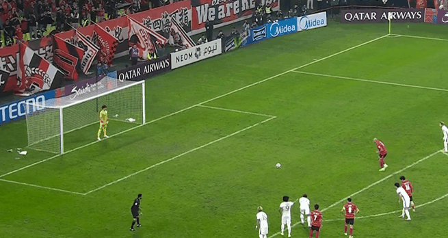 下半场回来,仅仅一分钟,对手利用边线球的机会,禁区连续形成颇具威胁的射门,幸亏蹇韬注意力高度集中,力保球门不失!第50分钟,禁区内周定洋被荒木隼人推倒,裁判果断吹罚点球,费利佩一蹴而就,1:0!